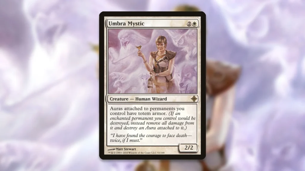 - 《陰影の神秘家》は、自分がコントロールするすべてのオーラに「族霊鎧」を付与する能力を持ち、《皇の声、軽脚》のようなヴォルトロン戦略や、《僻境宮廷のエリヴェア》デッキで強力なシナジーを発揮します。