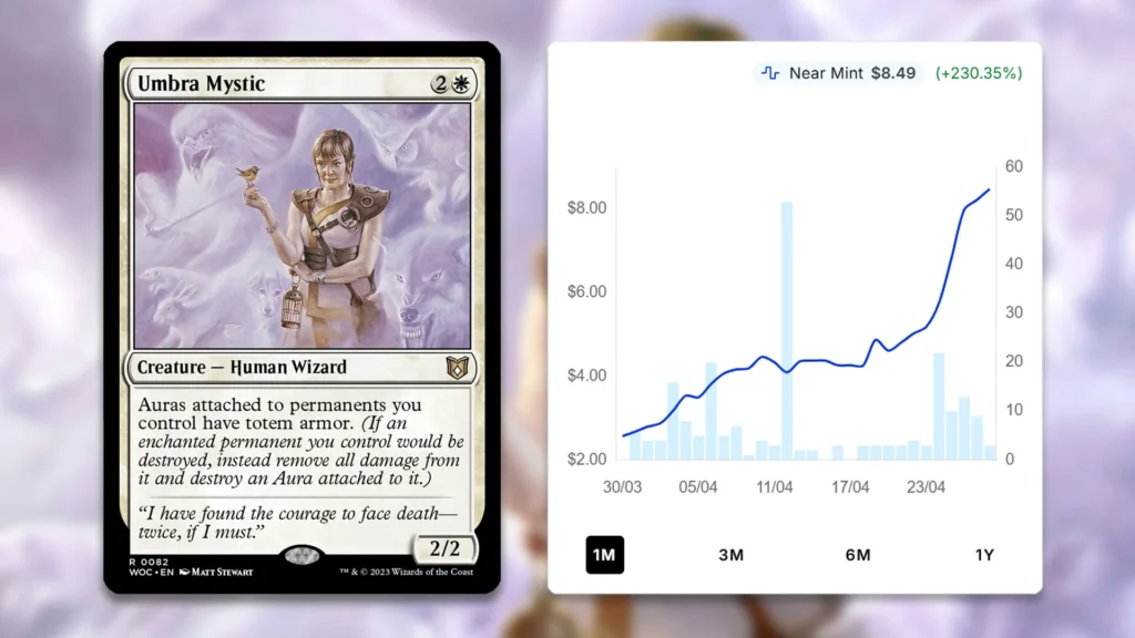 統率者デッキ「Silverquill Influence」の登場と人気を背景に、対戦相手のクリーチャーにオーラを付ける独自の戦略が注目を集める中、関連パーツである《陰影の神秘家》の価格が過去1ヶ月で260%以上急騰しています。本来の構築済みのコンセプトとは一部アンチシナジーがあるものの、独自の活用法や供給の少なさから、市場価格に大きな変動が起きています。