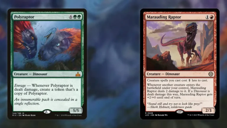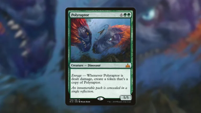 - 神話レアの恐竜クリーチャーで、ダメージを受けると自身のコピーを生成する極めて強力な能力を持つ。