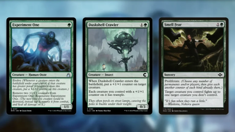 - 安価なクリーチャーに+1/+1カウンターを乗せ、増殖で強化。
