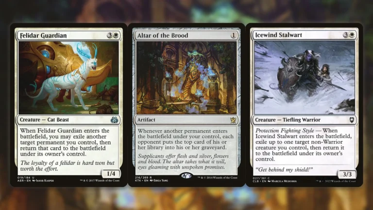 - 「守護フェリダー」+「アイスウィンドの重鎮」だけで成立する既存の無限フリッカー+「群の祭壇」で勝ちなど、より簡単な手段がある。