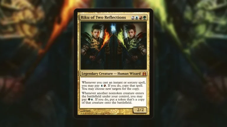 「二つ反射のリクー」は、呪文とクリーチャーの両方をコピーできる希少な統率者で、ETB効果や追加ターン呪文との相性が抜群だ。