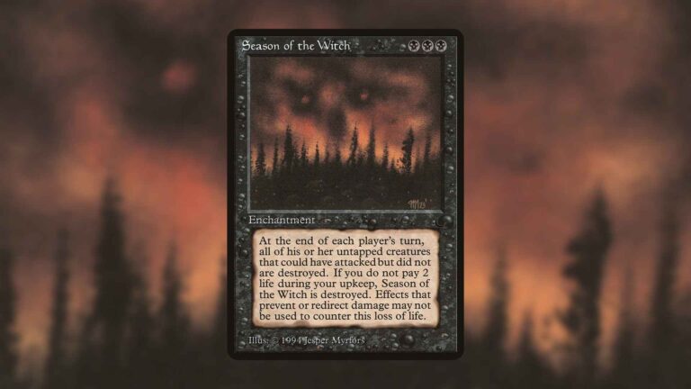 「Season of the Witch」は、統率者戦で起こりがちな膠着状態を強制的に突破し、盤面を動かす力を持った古典的なカードです。