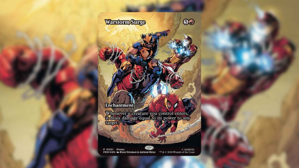 「Secrets of Strixhaven」のプレビューシーズンが進行する中、MTGとMarvelの新たなコラボレーションとして、特別なアートワークを施した《戦嵐のうねり》のプロモカードが公開されました。このカードは、近日公開予定のコミックに関連した特別なプロモーションの一部として登場します。