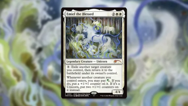 その中でも注目を集めているのは、実は馬ではなくユニコーンの伝説クリーチャー「祝福されたエミエル」。