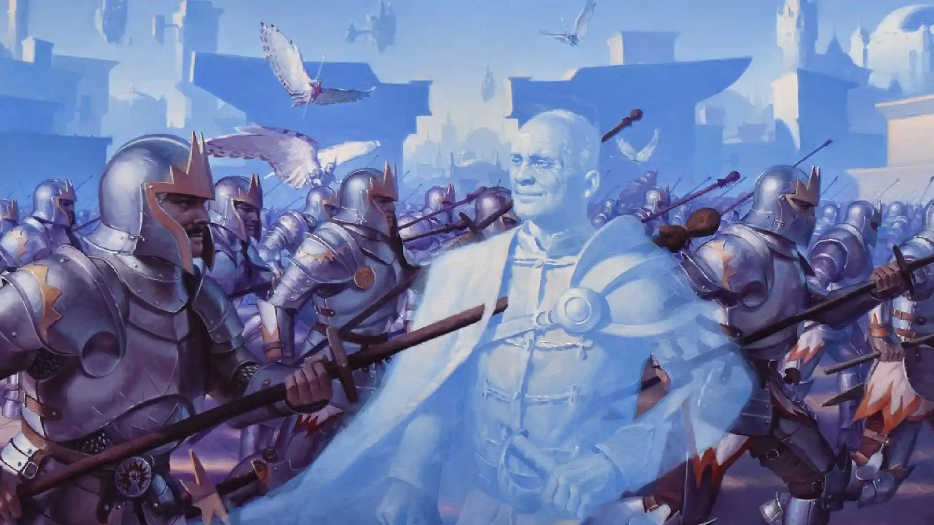 「軍勢の集結」「栄光の終焉」といった大量トークン生成カードで横に広げ、「選定された行進」や「嵐の討伐者、エルズペス」などの倍化カードで爆発的に展開できる。 -