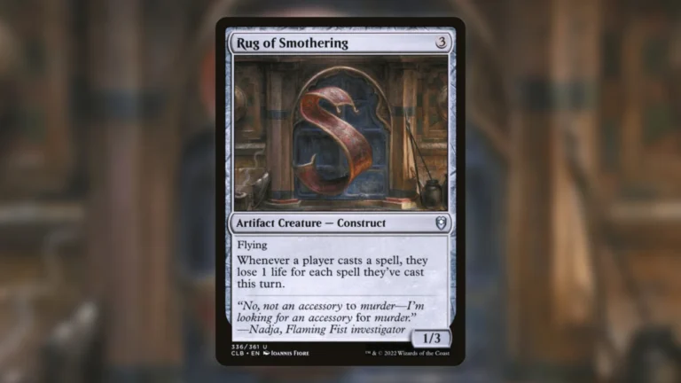 - アーティファクト版「The Tabernacle at Pendrell Vale」として機能し、大量のマナアーティファクトや宝物・食物トークンをほぼ無力化。
