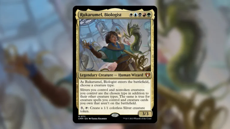 「生物学者、ルカルメル」は、部族シナジーを横断的に束ねる唯一無二の五色統率者で、サーチ・ドロー・再利用・大マナの“部族最強パーツ”を一枚で使い分けできる。