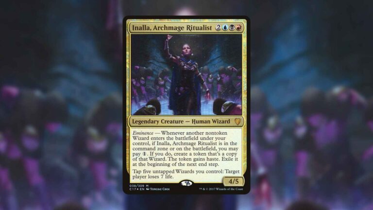 しかし今回、ウィザード部族を主軸とする「儀式の大魔導師、イナーラ」が、2万ドル(約306万円)規模のcEDH招待予選でトップ8入りを果たし、再び注目を集めている。