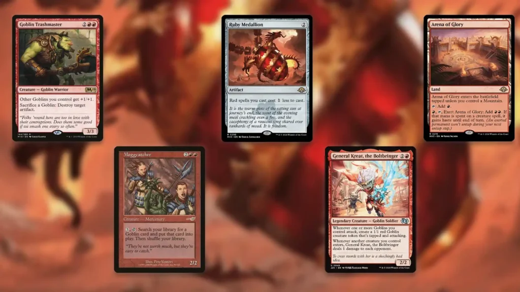 - 1ターン目にプレイされると脅威となる《ゴブリンの従僕》(約3100円)や、毎ターンライブラリーからゴブリンをサーチできる《モグ捕り人》(約1700円)が収録されています。