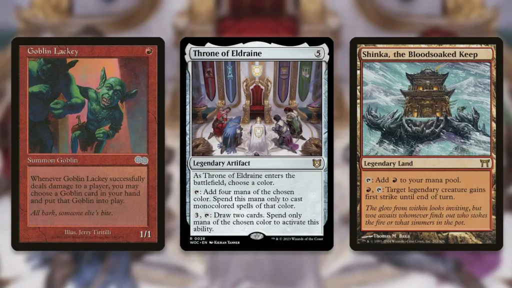 近日発売予定のSecret Lair統率者デッキ「Goblin Storm」の全カードリストがリークされました。この製品は《うろつく玉座》を筆頭に、単色デッキやゴブリン部族戦略を強化する高額な再録カードが多数含まれていることで注目を集めています。