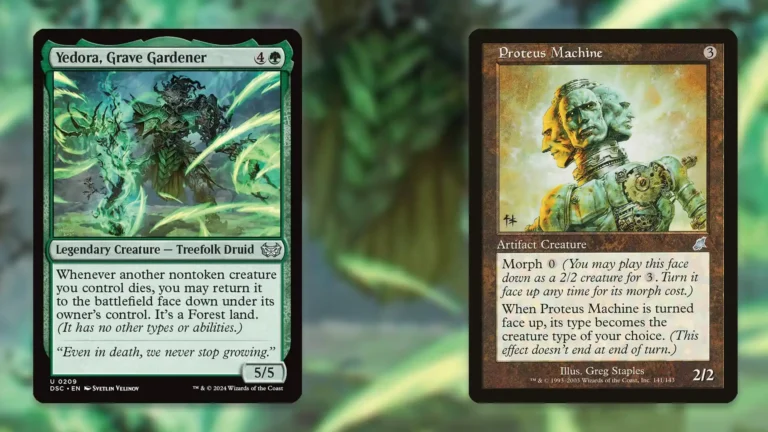 「霊園の庭師、イェドラ」は、緑単では珍しい“死亡→土地化”という独自ギミックを軸に、上陸・変異・生け贄コンボなど多彩な戦略を構築できる指揮者です。