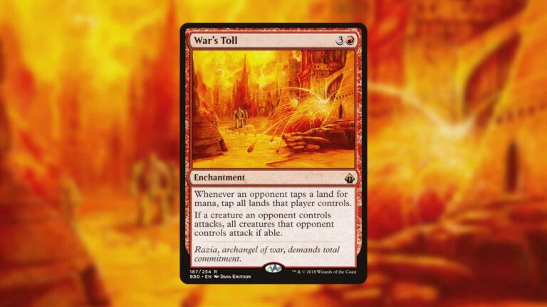 「戦争の代価」は、現在人気の「土の技」戦略に対する強力なメタカードであり、さらに特定の統率者デッキではゲームを決定づける力を持ちます。